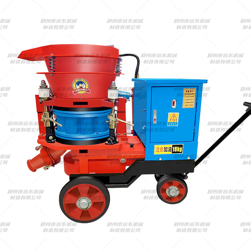 干式噴漿機是往料斗里加入的被噴射的原料(混凝土、水泥等)是干的噴射混凝土的設(shè)備,通過空壓機施加壓力,把干料送到噴頭處,噴頭處有進水管,干料在噴頭處經(jīng)過與水混合然后噴射出去。廣泛適用于礦山、隧道、涵洞、地鐵、邊坡支護、水電工程、地下工程及煤礦高瓦斯礦井巷道噴射混凝土施工作業(yè)。